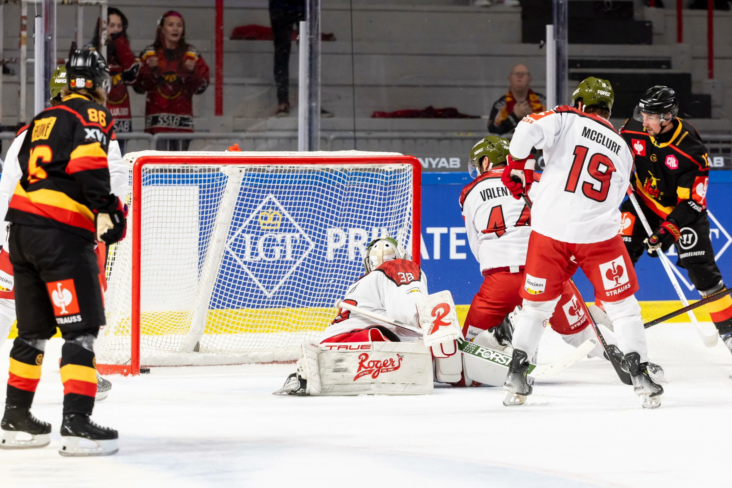 A diventare protagonista nel periodo centrale è Lassinantti, goalie del Luleå, che salva su Schneider, quindi al 35’10” il 2-0 ancora di Koivistoinen sembra indirizzare il match. Il Bolzano però non ci sta e dimezza lo svantaggio al 37’15” con Bradley in superiorità numerica dopo una super azione personale (spin-o-rama) di Gersich, rimettendo tutto in discussione nel terzo drittel. Harvey con un paio di big saves tiene in partita in Foxes, che al 58’23” (in situazione di extra attacker) trovano il punto del 2-2 con Gersich, bravo a colpire due volte dopo la prima respinta di Lassinantti. Si decide tutto all’overtime dove bastano 14 secondi ai padroni di casa per vincerla: Allard spara a tutta pista un puck che trova Bromé, il cui uno-contro-zero è vincente davanti ad Harvey e vale il definitivo 3 a 2.