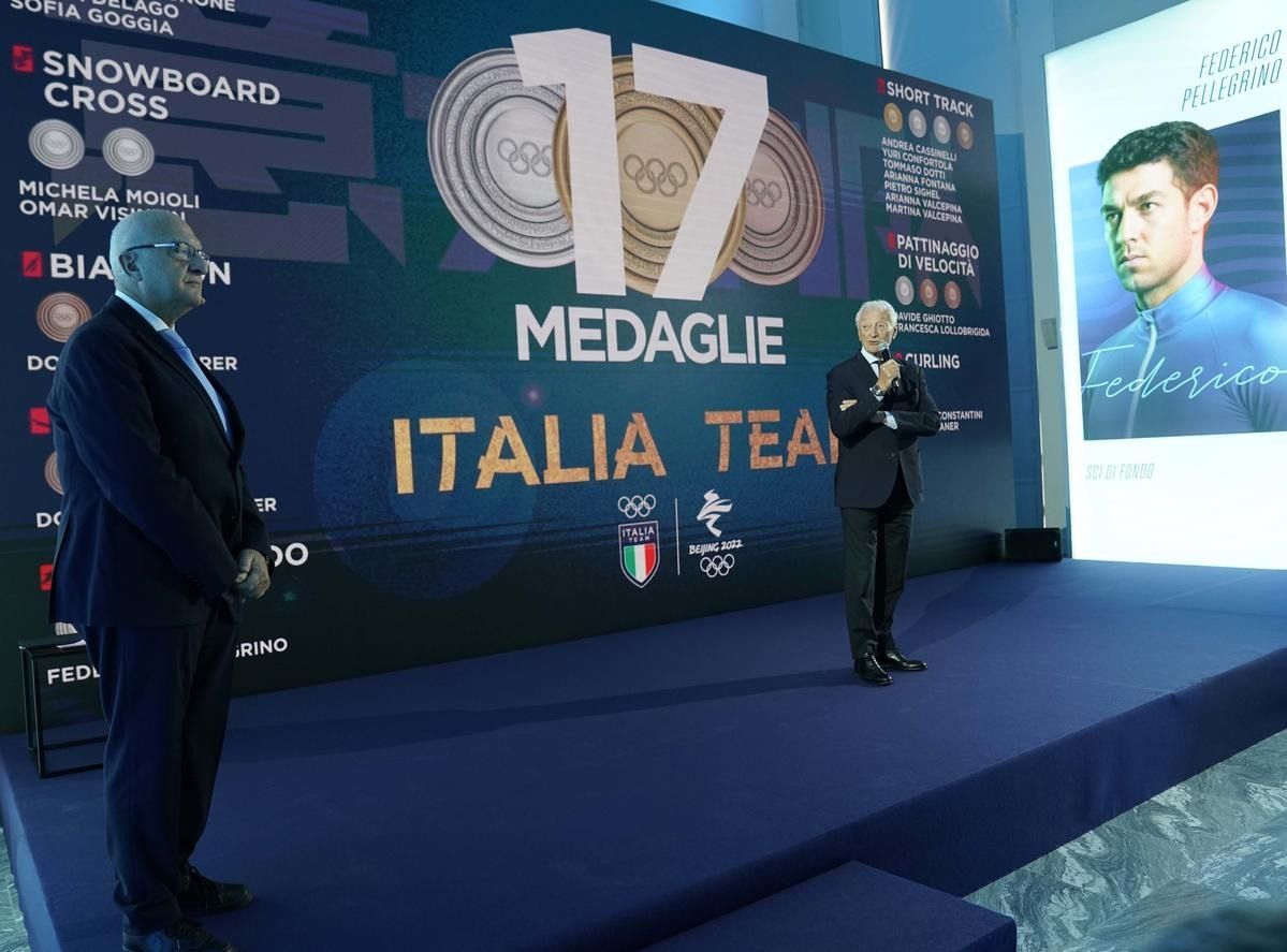 Il Segretario Generale, Carlo Mornati, Capo Missione ai Giochi, ha invece fotografato lo scenario dal punto di vista agonistico, indicando punti di forza e stato di salute del movimento. “Il ‘Road to’ è ormai una tradizione che ci accompagna dal 2016. Lanciamo il claim e condividiamo il percorso che ci sta accompagnando verso i Giochi, grazie al prezioso lavoro di tutti gli asset del CONI, dai Centri di Preparazione Olimpica, all’Istituto di Medicina e Scienza dello Sport, insieme ai vari dipartimenti coinvolti. Milano Cortina ha un fascino particolare, ci sentiamo davvero protagonisti. Il CONI per la prima volta ha recitato un ruolo speciale: sotto la Presidenza Malagò abbiamo fatto sintesi e unito più territori, con un doppio naming. Viviamo un unicum. Rispetto a Pechino avremo uno sport in più, le gare passeranno da 109 a 116, ci saranno variazioni all’interno del programma, anche nell’ottica delle prove miste per favorire, sempre di più, la parità di genere. Saremo protagonisti in 5 cluster: Milano, Cortina, Anterselva, Valtellina e Val di Fiemme, luoghi iconici in ossequio al dossier. Veniamo da Pechino, la seconda edizione migliore di sempre dopo Lillehammer. La nostra speranza è di incrementare quel numero di medaglie. Le proiezioni ci vedono all’ottavo posto con una medaglia in più rispetto a quattro anni fa. Il livello di competitività è cresciuto molto nell’ultimo quadriennio, come i Paesi partecipanti (+65% rispetto a Lillehammer 1994). La competitività dell’Italia Team è aumentata del 240% rispetto a Vancouver 2010: l’Olympic index recita un +77% rispetto al 2012 nel programma invernale. Saremo presenti ovunque, tranne che in sei gare, con oltre 200 atleti protagonisti: sarà il numero più alto di sempre. I numeri sono estremamente incoraggianti, per valutare un movimento sportivo ci sono tanti fattori ma siamo orgogliosi del lavoro svolto grazie all’apporto di FISI, FISG e di tutte le declinazioni coinvolte. La decrescita demografica rappresenta la vera criticità. Tra il 1992 e il 2004 abbiamo perso 4,2 milioni di potenziali atleti: è un dato che fa riflettere in vista del futuro”.
