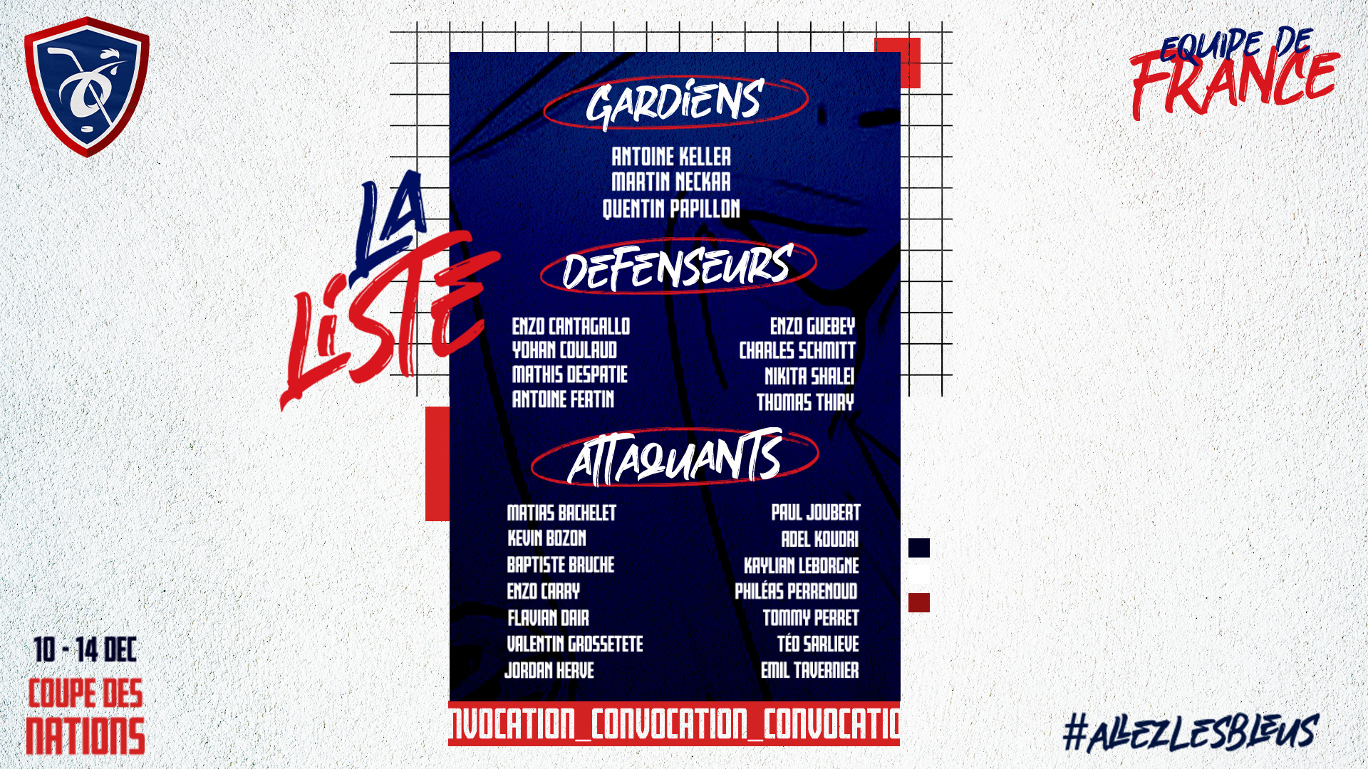 Per l’appuntamento di Budapest, il capo allenatore della selezione francese Yannick Treille ha convocato 25 giocatori pescando soprattutto dal campionato locale dal quale arrivano 21 convocati, mentre gli altri quattro sono tutti coinvolti in Svizzera con il terzetto Keller-Thiry-Bozon dell’Ajoje e il giovane Neckar tesserato con il Langnau e impegnato soprattutto nel campionato giovanile elvetico. A novembre la Francia ha vinto il girone ospitato ad Epinal grazie a successi su Danimarca e Norvegia mentre con l’Ungheria è arrivato uno stop, e si sta preparando al pari dell’Italia per i prossimi Giochi Olimpici Invernali di Milano-Cortina, in cui è inserita nel Gruppo A con Svizzera, Canada e Repubblica Ceca.