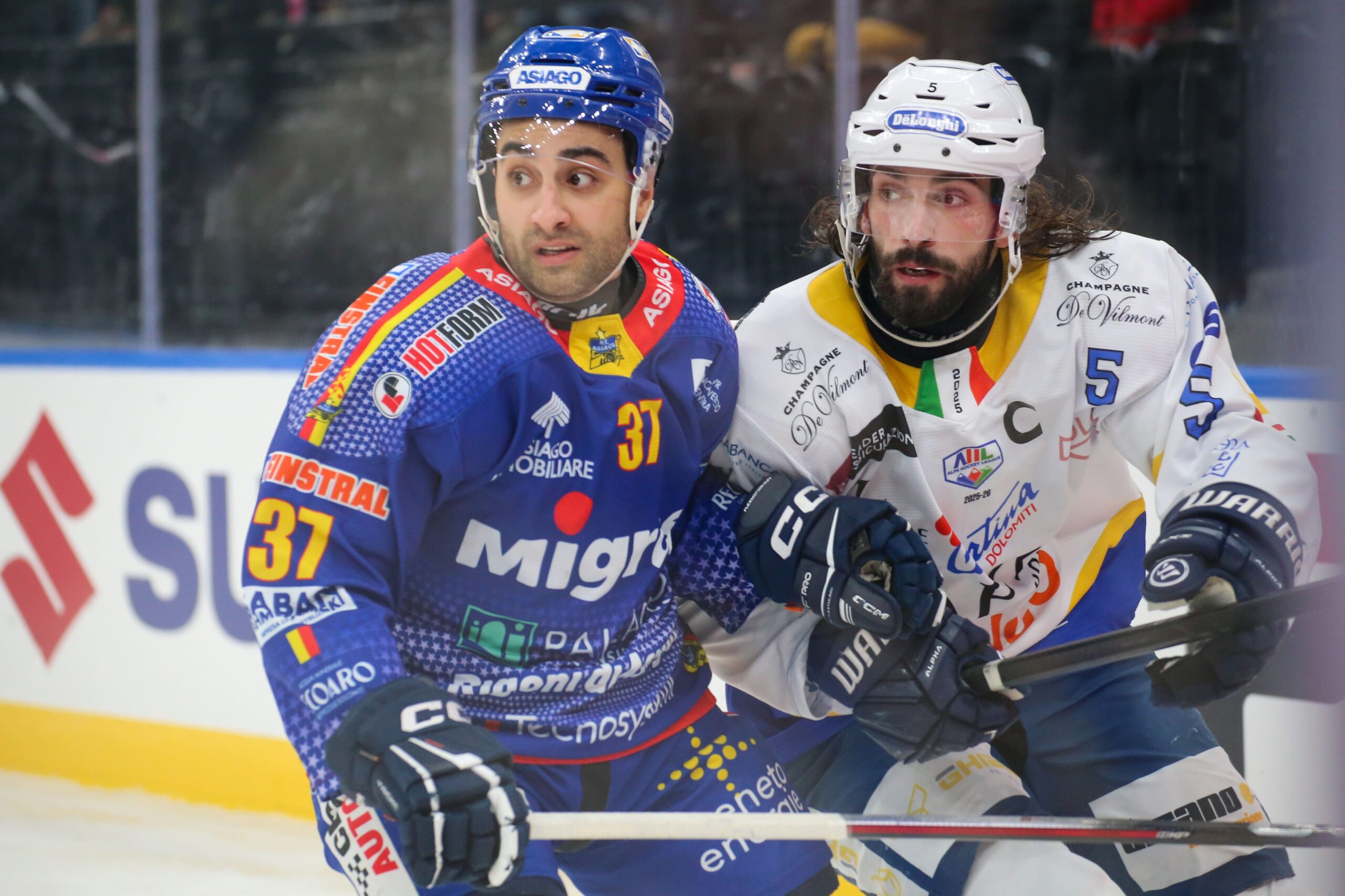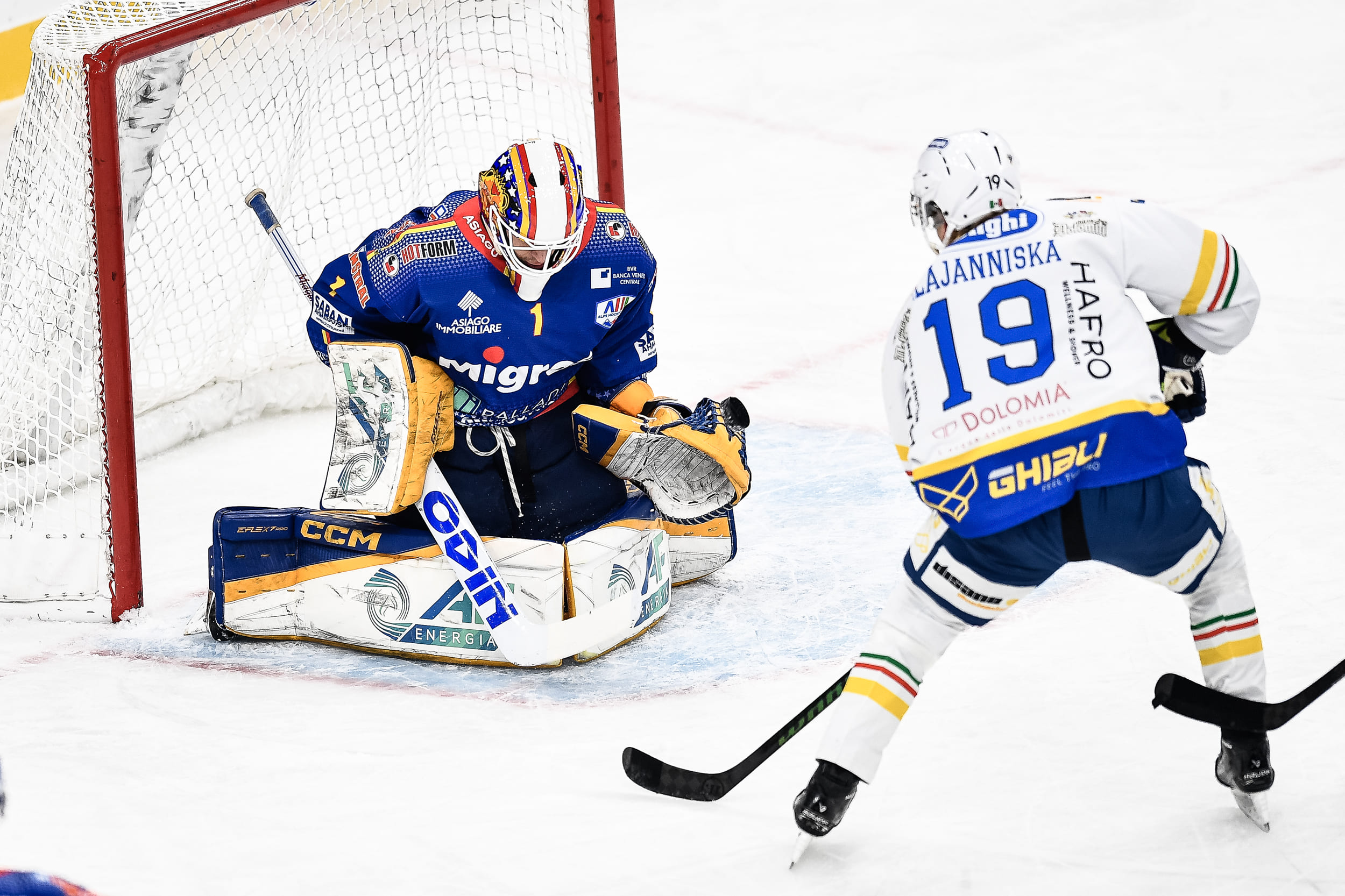 Formazione HC Migross Asiago: Rudy Rigoni 60:00 (Riccardo Santangelo); Lorenzo Casetti - Gregorio Gios; Robert Joseph Calisti - Steven Joseph Bellini; Gabriele Parini - Filippo Rigoni; Michele Forte - Andrea Rigoni; Tommaso Traversa - Carter Brock Leiter Johnson - Jose' Antonio Magnabosco Aguirre; Nicholas Porco - Lucas Gabriel Chiodo - Ryan Valentini; Nathan Garau - Filippo Rigoni - Alessandro Parco; Andrea Miglioranzi - Michele Stevan - Raffael Nitz; Tecnico: John Parco;